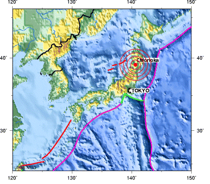 另?yè)?jù)美國(guó)地質(zhì)勘探局表示,地震震中位于仙臺(tái)市以北約100公里的秋田境內(nèi)離地面10公里處;在震中南面390公里的首都東京也有震感,樓宇搖晃。據(jù)共同社報(bào)道,區(qū)內(nèi)所有新干線服務(wù)自動(dòng)停運(yùn),仙臺(tái)市地鐵也全線停運(yùn),宮城縣內(nèi)的高速公路全部被封鎖。