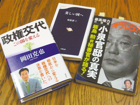 在野的民主黨黨魁小澤一郎在政黨輪替呼聲高的06年一口氣出版《小澤主義》和《剛腕維新》2本書,民主黨副黨魁岡田克也《政權輪替》也在為執(zhí)政敲邊鼓。