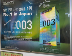 韓國首爾地鐵車廂出現(xiàn)日本避孕套廣告引非議(圖)