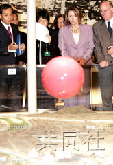佩洛西參觀廣島核爆資料館,觀看遭到破壞的廣島全景立體模型。