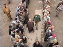 成百上千的選民不顧分裂組織抵制選舉的呼吁,大清早就在以穆斯林居民為主的克什米爾山谷地區(qū)排起了長隊準(zhǔn)備投票。