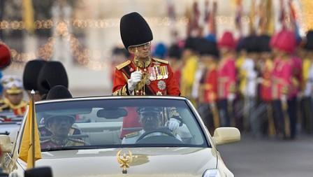 當(dāng)天下午,泰國首都曼谷的五世王廣場一帶張燈結(jié)彩,每年一度的慶祝國王生日閱兵典禮在這里隆重舉行。接受檢閱的泰國各兵種官兵在武裝部隊(duì)總司令的帶領(lǐng)下向國王宣誓效忠。國王隨后發(fā)表了簡單講話,希望軍隊(duì)保持團(tuán)結(jié),為維護(hù)國家和人民利益發(fā)揮積極作用。