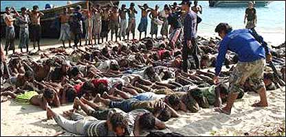 BBC在印度加爾各答的記者說,自去年11月開始,有數(shù)以千計的孟加拉和緬甸貧民試圖偷渡到比較富裕的東南亞國家找工作。這五百名偷渡者大部分是緬甸西部若開邦的羅亞興穆斯林,但很多偷渡者被泰國海軍截獲。
