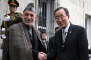 潘基文與卡爾扎伊討論了阿富汗的安全局勢(shì)、社會(huì)經(jīng)濟(jì)發(fā)展以及今年將舉行的選舉等問(wèn)題。