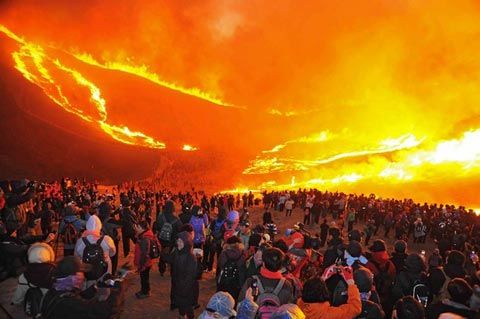 據(jù)香港《文匯報(bào)》報(bào)道,超過1.5萬(wàn)名居民當(dāng)天步行上當(dāng)?shù)鼗鹜,參?年一度的元宵活動(dòng),當(dāng)?shù)卣凑諅鹘y(tǒng)在山上放火燒草,祈求豐收及好運(yùn)。期間懷疑因?yàn)閺?qiáng)風(fēng)令火勢(shì)失控,圍觀民眾爭(zhēng)相走避,釀成人踩人慘劇。