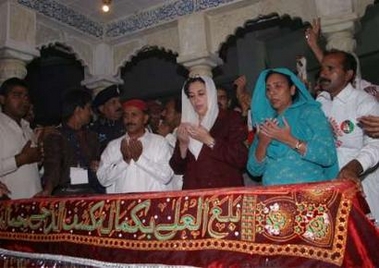 中新網(wǎng)10月28日電 巴基斯坦前總理貝·布托27日返回祖籍老家祭拜父親陵墓。這是她9天前返國(guó)遭炸彈襲擊以來(lái)首次公開旅行。