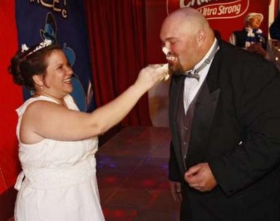 新娘穿的潔白婚紗是用數(shù)卷廁紙精制而成,由本年度廁紙結(jié)婚禮服比賽冠軍哈納•金設(shè)計。廉宜時髦結(jié)婚公司對本次婚禮提供了贊助。