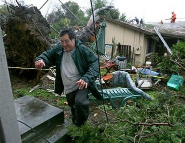 據(jù)加州州長(zhǎng)緊急服務(wù)辦公室發(fā)言人說,在洛杉磯的奇諾市,一名婦女企圖逃離拋錨的汽車時(shí),被洪水沖走;一名在薩克拉門托尤巴市的工人則被倒塌的大樹壓死。