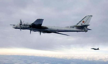 英報公布美F/A-18戰(zhàn)機跟蹤俄圖-95轟炸機圖片(圖)