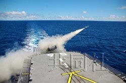 日本海上自衛(wèi)隊的宙斯盾艦“霧島”號在環(huán)太平洋聯(lián)合軍演中發(fā)射防空導(dǎo)彈。