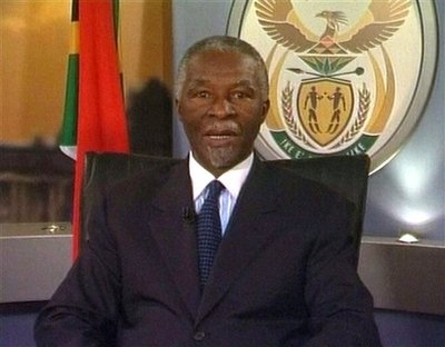 南非總統(tǒng)姆貝基發(fā)表電視講話宣布正式辭職。