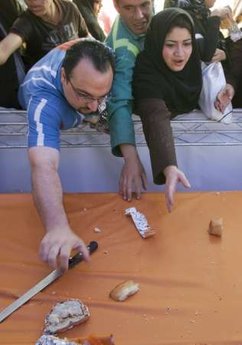 中新網(wǎng)10月19日電 據(jù)臺灣中廣新聞報道,伊朗做出刷新世界紀(jì)錄的特大號三明治,可是還來不及完成認(rèn)證,就被圍觀的群眾搶食一空。