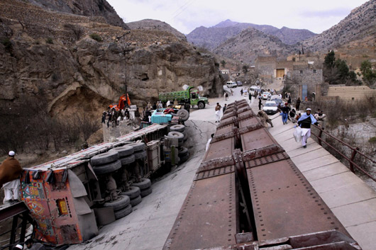 隨著美國(guó)計(jì)劃派遣3萬(wàn)名士兵進(jìn)入阿富汗,通過(guò)巴基斯坦的補(bǔ)給線成為五角大樓最重要的課題之一。有75%的補(bǔ)給物資由巴基斯坦進(jìn)入阿富汗。這些物資首先通過(guò)海運(yùn)抵達(dá)巴基斯坦南部港口卡拉齊,然后沿著公路北上,最終抵達(dá)阿首都喀布爾。據(jù)統(tǒng)計(jì),每天有至少300輛卡車(chē)經(jīng)卡巴通道出入阿富汗,不過(guò),美軍的武器彈藥不經(jīng)卡巴通道運(yùn)輸。
