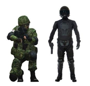 國防科學研究所有關負責人表示:“如果穿上分兩個階段開發(fā)出的戰(zhàn)服并戴上頭盔,士兵就無異于佩備尖端裝備的‘機器戰(zhàn)警’。”目前,許多發(fā)達國家也在開發(fā)類似的未來士兵體系,例如,美國的“陸地勇士”(Land Warrior) 等。