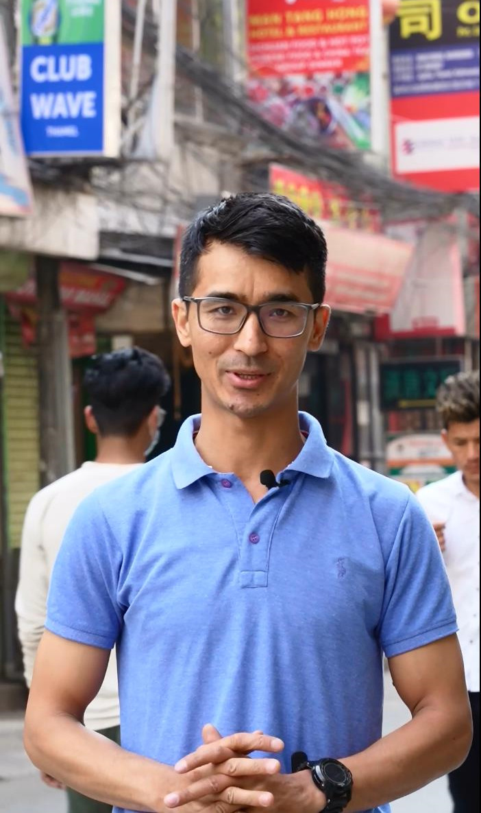 尼泊爾青年帶大家逛尼泊爾的華人街。位于加德滿都的泰米爾街區(qū),是尼泊爾最繁華的街道之一。