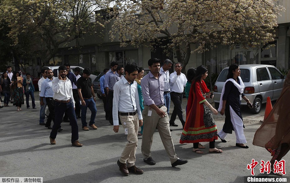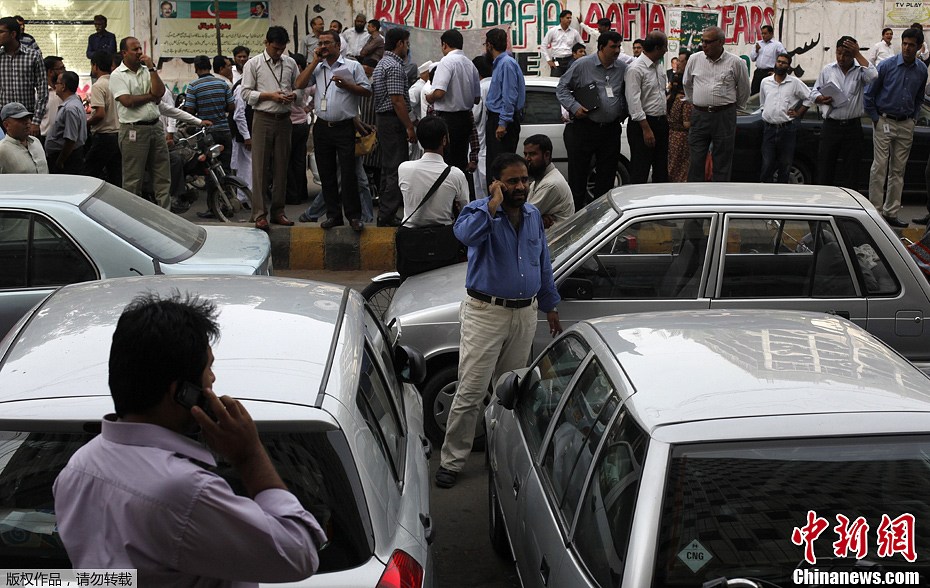 巴基斯坦卡拉奇的工作人員從樓宇中撤離