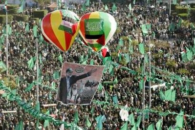 據報道,成千上萬的巴勒斯坦人在加沙地區(qū)的卡齊拜廣場舉行集會慶祝哈馬斯運動成立20周年。他們手舉各種旗幟,上面寫著“哈馬斯強大”的字樣。哈馬斯運動支持者從其它城市和鄉(xiāng)村來到了加沙市。