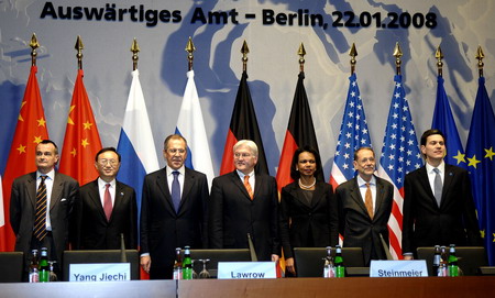 中新網(wǎng)1月23日電 據(jù)中國外交部網(wǎng)站消息,1月22日,中國、美國、俄羅斯、英國、法國、德國六國外長會議在柏林舉行。中國外交部長楊潔篪出席。會議就伊朗核問題安理會決議草案要素交換了意見,并就下一步總體方略進(jìn)行了有益的討論。與會各方同意繼續(xù)就此保持密切溝通與磋商。