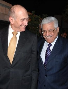 奧爾默特(左)與阿巴斯舉行會(huì)晤,再商巴以和平進(jìn)程。