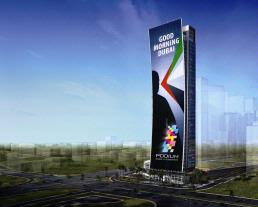 據(jù)新加坡《聯(lián)合早報》13日報道,這幢廣告牌大樓由阿聯(lián)酋公司“Tameer Holidings”興建,樓高33層,采用LED顯示屏播出廣告。設(shè)計師正研究電子幕墻的設(shè)計,盡量做到廣告牌不會阻擋天然光射進辦公室。