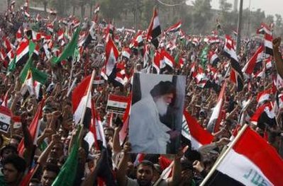 示威者響應(yīng)什葉派政治人物薩德爾的號(hào)召,一大早在巴格達(dá)東部薩德爾城的穆扎法爾廣場(chǎng)聚集。大部分示威者是年輕人,也有一些婦女和兒童。他們揮舞著伊拉克國(guó)旗,手舉薩德爾畫像,高喊“侵略者滾出去!我們不要駐軍地位協(xié)議!”等口號(hào),一直游行到約3公里外的穆斯坦西里亞廣場(chǎng)。