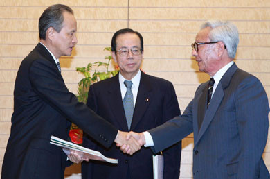 中新網(wǎng)6月12日電 據(jù)中國外交部網(wǎng)站消息,6月12日,日本兵庫縣前知事、紀(jì)念兵庫震災(zāi)21世紀(jì)研究機構(gòu)理事長貝原俊民在日本首相官邸向中方贈送了阪神地震災(zāi)后重建資料。日本首相福田康夫、中國駐日本大使崔天凱等出席贈送儀式。