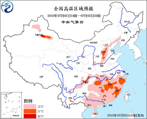 中新網(wǎng)7月3日電 中央氣象臺(tái)3日10時(shí)發(fā)布高溫黃色預(yù)警:預(yù)計(jì),今日下午,江淮西南部、江漢南部、江南大部、華南大部、貴州東部、重慶大部、四川東部和南部、云南東北部等地有35~37℃、局地38~40℃的高溫天氣。另外,遼寧西部、北京中南部、河北大部、山西西南部、河南北部等地的部分地區(qū)也將有35~37℃、局地38~39℃的高溫天氣。