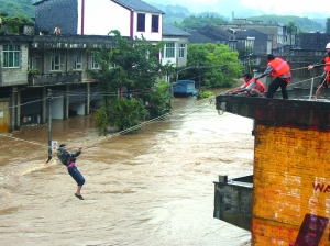 位于三峽庫(kù)區(qū)的重慶市萬(wàn)州區(qū)分水鎮(zhèn)9日凌晨開始遭受強(qiáng)降雨襲擊,引發(fā)山洪、泥石流、山體滑坡等自然災(zāi)害。強(qiáng)降雨導(dǎo)致大量農(nóng)田被淹、莊稼被毀,分水鎮(zhèn)及所轄的三正場(chǎng)鎮(zhèn)被淹,積水深達(dá)1.2米。暴雨導(dǎo)致分水鎮(zhèn)6000多間房屋被淹,600多間房屋倒塌,1.5萬(wàn)人受災(zāi)并被緊急安全轉(zhuǎn)移。