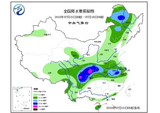 中新網(wǎng)7月15日電 據(jù)中央氣象臺預(yù)報,未來三天,四川盆地、淮河流域及廣東南部、海南、廣西南部沿海、陜西南部等地將有大雨或暴雨,部分地區(qū)有大暴雨;甘肅東南部、內(nèi)蒙古東北部、黑龍江西部等地將有大雨,部分地區(qū)有暴雨;上述部分地區(qū)并伴有短時雷雨大風(fēng)或冰雹等強(qiáng)對流天氣。