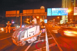 本報(bào)訊(記者倪明、王鶴)從昨日22時(shí)開始,內(nèi)環(huán)路南田路入口至江灣橋南出口,黃埔大道放射線出口段兩處路段約4公里全封閉施工,施工單位將趁著周末和單雙號(hào)限行,交通量相對(duì)較少的機(jī)會(huì)24小時(shí)刨鋪瀝青,爭(zhēng)取在下周一白天重新開放封閉路段。昨晚10時(shí)07分,記者驅(qū)車前往南田路入口,只見(jiàn)電子提示牌上已閃現(xiàn)封閉通知,沿路可見(jiàn)懸掛的車輛繞行指引提示牌。在現(xiàn)場(chǎng)交警的指揮下,交通秩序尚好。交警人士透露,大修啟動(dòng)后,馬上迎來(lái)單雙號(hào)演練,對(duì)交通影響不大,但單雙號(hào)演練結(jié)束后,廣州交通將面臨考驗(yàn)。