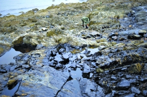 工作人員不斷向海里拋清油氈,一張清油氈可以吸收約70-80斤的石油。清污人員使用的工具主要為清油氈、消油劑和圍油欄。盡管清油氈和消油劑的數(shù)量非常大,但與大面積受污染海域相比,還只是一小部分。
