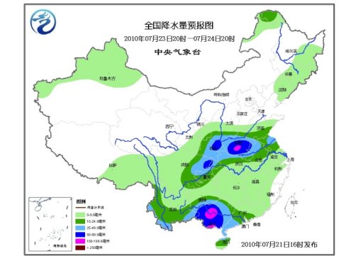 23日20時(shí)至24日20時(shí),新疆北部、西藏東部、內(nèi)蒙古東北部、東北中東部及秦嶺、淮河以南大部地區(qū)有小到中雨或陣雨,其中,四川盆地東部、陜西南部、湖北北部、河南大部、安徽北部、江蘇北部、云南南部、貴州南部、廣西大部、廣東西南部、海南北部等地有大到暴雨,局地有大暴雨;上述地區(qū)局地并伴有短時(shí)雷雨大風(fēng)等強(qiáng)對(duì)流天氣。新疆中部、內(nèi)蒙古西部等地有4~6級(jí)風(fēng)。北部灣有6~7級(jí)風(fēng),臺(tái)灣海峽有5~7級(jí)偏南風(fēng)。