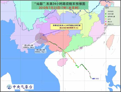 今年第3號熱帶風暴“燦都”(CHANTHU)于7月23日傍晚在廣西西部減弱為熱帶低壓,23日20時中央氣象臺對其停止編報。