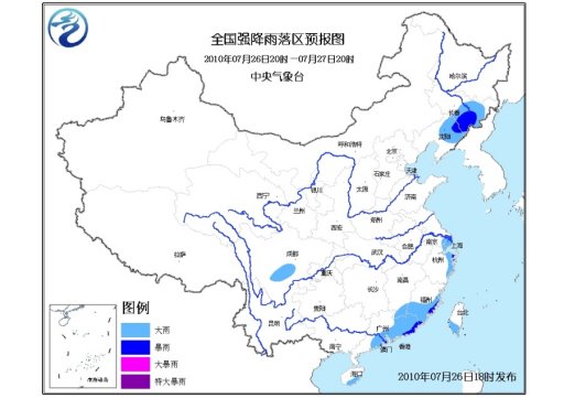 中新網(wǎng)7月26日電 據(jù)中央氣象臺消息,中央氣象臺7月26日18時繼續(xù)發(fā)布暴雨藍色預警:預計,7月26日20時到7月27日20時,吉林中東部、遼寧北部、四川盆地南部部分地區(qū)、浙江東部、福建東部和南部、江西南部、廣東中東部、海南南部、臺灣南部等地有大雨或暴雨,其中,浙江東部沿海、福建東部、廣東東部等地的局部地區(qū)有大暴雨;上述局地并伴有短時雷雨大風等強對流天氣。