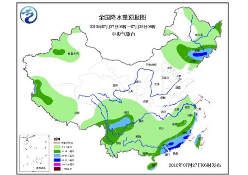 27日08時至28日08時,新疆西北部、西藏大部、甘肅南部、內(nèi)蒙古東南部、東北大部、江淮大部、江南、華南、西南大部等地有小到中雨或陣雨,其中,吉林中南部、遼寧北部、四川西南部、云南西北部、浙江東部沿海、福建東部和南部、廣東中東部、海南南部、臺灣西部等地有大雨或暴雨,浙江東部沿海、福建東部沿海、廣東東部等地的局部地區(qū)有大暴雨;上述局地并伴有短時雷雨大風(fēng)等強對流天氣。新疆北部、內(nèi)蒙古東部、東北等地有4~5級風(fēng)。受入海氣旋和西南季風(fēng)的共同影響,黃海南部海域、東海北部海域?qū)⒂?~8級、陣風(fēng)9~10級的旋轉(zhuǎn)風(fēng);東海南部海域、臺灣海峽、臺灣以東洋面將有7~8級、陣風(fēng)9級的西南風(fēng);黃海中部海域?qū)⒂?~6級東南風(fēng)轉(zhuǎn)6~7級、陣風(fēng)8級的旋轉(zhuǎn)風(fēng)。