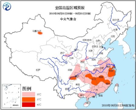 未來三天,黃淮大部、江淮、江漢、江南、華南大部、四川盆地中東部、重慶、貴州東部及甘肅中部、陜西大部、山西中部和西南部等地有35~37℃的高溫天氣,局部最高氣溫可達(dá)38℃以上。