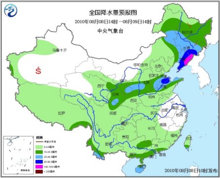 8日08時至9日08時,新疆天山地區(qū)和南疆西部、西藏大部、青海東北部和南部、西北地區(qū)中東部、內(nèi)蒙古中東部、東北、華北、黃淮大部、江淮西部、江漢、江南中西部、華南大部、西南以及臺灣等地有小到中雨或陣雨,其中,黑龍江南部、吉林大部、遼寧大部、河北中南部和東部、北京東部、天津、山東北部以及內(nèi)蒙古東部的部分地區(qū)、海南大部、臺灣南部等地有大雨或暴雨,吉林東南部、遼寧中東部等地的局地還將有大暴雨;上述部分地區(qū)并伴有短時雷雨大風(fēng)等強對流天氣。內(nèi)蒙古中東部、東北西部等地有4~6級風(fēng)。黃海、東海、臺灣海峽將有5~8級風(fēng)。