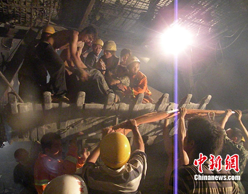 凌晨5時許,消防官兵抵達現(xiàn)場,發(fā)現(xiàn)隧道施工場地盡頭,幾塊巨大的山石垮塌,將支撐的橫梁壓彎變形,一工人因逃離不及時,左腳被壓在橫梁與山石之間無法動彈,加之隧道通風不好,山體還有繼續(xù)垮塌的可能,兩臺重型挖掘機因支撐山體產(chǎn)生的廢氣十分嗆人,對開展營救十分不利。