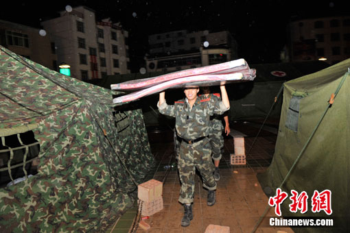 中新網(wǎng)舟曲8月11日電(記者 唐偉杰 劉賢)晚上8點(diǎn)半左右,在數(shù)十分鐘的密集電閃雷鳴后,舟曲災(zāi)區(qū)開(kāi)始降雨,目前雨勢(shì)較小。據(jù)氣象部門預(yù)報(bào),今晚舟曲雷陣雨轉(zhuǎn)中雨,明天預(yù)計(jì)繼續(xù)有中雨。