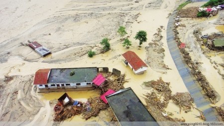 8月12日22時30分左右,綿竹市清平鄉(xiāng)境內發(fā)生強降雨,在地震中被山體掩埋的王家溝突發(fā)特大泥石流,將綿遠河堵塞,造成河水改道,將位于河道下游約1公里處的清平鄉(xiāng)部分場鎮(zhèn)淹沒,大量群眾被洪水圍困。