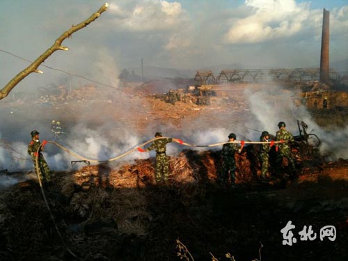 記者17時10分許自雞西方向進(jìn)入伊春市區(qū),自入城口至事發(fā)現(xiàn)場一路已經(jīng)戒嚴(yán),事發(fā)現(xiàn)場位于河邊,消防隊(duì)員正在從河里取水撲火救援,目前仍有明火煙霧非常大,從很遠(yuǎn)處也可望見,地上有一層厚厚煙花碎屑。(記者 陳靜)