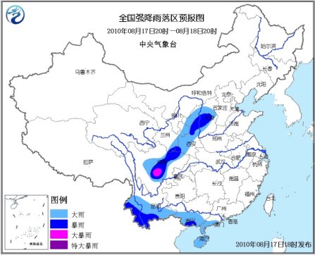 中新網(wǎng)8月17日電 據(jù)中央氣象臺消息,中央氣象臺8月17日18時繼續(xù)發(fā)布暴雨藍色預(yù)警:8月17日20時到8月18日20時,四川盆地西部、川西高原東部、甘肅東部和南部、陜西中北部和西南部、山西中部和西部、云南西部和南部、廣西中南部、廣東西南部、海南等地有大雨或暴雨,其中四川盆地西南部的局地有大暴雨;上述局部地區(qū)并伴有短時雷雨大風等強對流天氣。