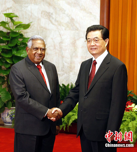 中新網(wǎng)8月18日電 據(jù)中國(guó)外交部網(wǎng)站消息,8月18日下午,國(guó)家主席胡錦濤在人民大會(huì)堂會(huì)見(jiàn)了新加坡總統(tǒng)納丹。
