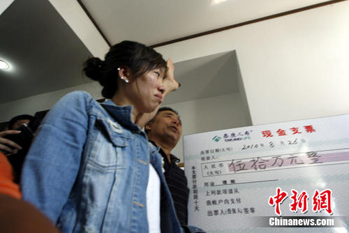 26日10時30分左右,泰康人壽總裁劉經(jīng)綸趕到遇難者家屬居住的光明商務酒店,親自將寫有50萬元的支票交到遇難者姚鐵強的家屬手中。這是伊春空難發(fā)生以來,遇難家屬獲得的第一筆大額賠款。
