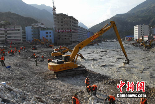 自8月8日以來,武警水電部隊500余名官兵和130余臺大型機械設(shè)備日夜連續(xù)奮戰(zhàn)在舟曲白龍江堰塞體搶險一線,他們采取“挖、裝、運”相結(jié)合、調(diào)運長臂反鏟深掏、人工安裝鐵絲籠固定護坡等作業(yè)方式,疏通河道,加快白龍江存水泄流速度,盡快消除洪水隱患。