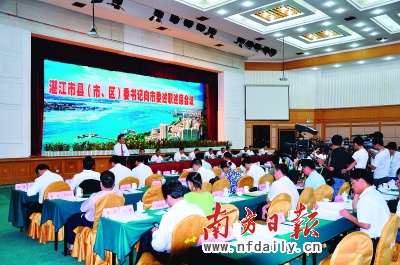 如果這幾天到湛江,詢問當(dāng)?shù)厥忻窈驼賳T,當(dāng)前最關(guān)注的事件是什么,他們一定會說是“縣(市、區(qū))委書記述職述廉會議”。昨日上午,該會議在湛江海濱賓館國際會議中心召開,湛江10位縣(市、區(qū))委書記先后上臺,向會場上69位評委———市委委員、候補(bǔ)委員,市紀(jì)委委員———匯報,會議全程被網(wǎng)絡(luò)、電視直播。與此同時,湛江市官網(wǎng)“碧海銀沙”上,網(wǎng)民“頂”、“批”、“拍磚”不斷。為學(xué)習(xí)湛江的民主經(jīng)驗(yàn),外省8個地級市派出了觀摩團(tuán)與會。