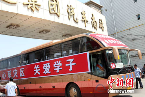 中新網(wǎng)蘭州8月27日電 (記者 張玉璽)27日下午1時許,26輛旅游大巴從蘭州始發(fā),駛往舟曲,準(zhǔn)備在28日上午轉(zhuǎn)運首批舟曲異地就學(xué)的第一批1000名學(xué)生和60名老師到蘭州就學(xué)。