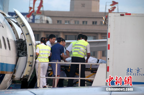 中新網(wǎng)北京8月28日電(張正尤) 8月27日18時15分,10名伊春“8•24”空難傷員飛抵首都國際機場。被在此等候的北京急救中心12輛急救車火速轉運到北京大學第三醫(yī)院、北京積水潭醫(yī)院救治。每家醫(yī)院安排收治5名傷員,傷員隨行家屬來京照顧傷員。
