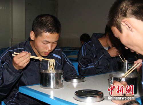 端著學(xué)校統(tǒng)一配發(fā)的新飯盒,孩子們在”新家“第一頓餐開灶了。“早就聽說蘭州的牛肉面非常有名”,高一(2)班的高興平毫不猶豫的走進了一樓食堂!拔兜勒姘!”高興平豎著大拇指說,沒想到來這里吃得第一頓飯就是牛肉面。