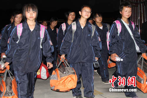 經(jīng)過10小時20分鐘的車程,經(jīng)過406公里的顛簸,下午19點20分,6輛大巴車緩緩駛?cè)胩m州科技外語中學(xué)的大門,舟曲一中高一年級240名學(xué)生和12名教師第一批平安到達“新家”。